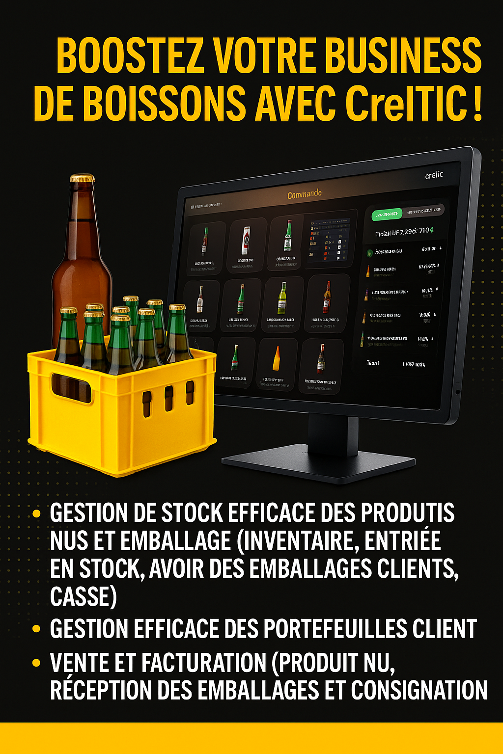 Création de logiciels pour automatiser la vente, le suivi de stock, la facturation, la gestion des emballages et la trésorerie (idéal pour les revendeurs de boissons, pharmacies, etc.)